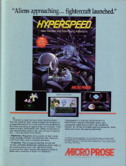 But there are plenty of opportunities for mistakes. Alien races of every conceivable size, shape, temperament and sophistication seek to aid, use, corrupt or destroy you - and you don't know which. Diplomacy. Negotiate with a variety of alien races. Forge strategic treaties and alliances with those you trust. Each alien race is uniquely animated. Firepower. Pilot a massive starship armed with remote-controlled fightercraft, kamikaze attack ships, a devastating plasma gun and high-tech probes. Customize the ship's engine and weapons systems. Battle alien warships in Super 3-D Graphics. Hyperspeed is a dramatic enhancement of MicroProse's popular interstellar action epic, Lightspeed, featuring four giant star clusters to explore, an all-new animated opening sequence, more aliens and more role-playing adventure. |